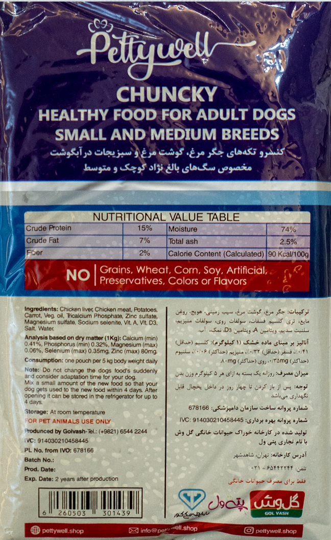 این غذای تکهای از مرغ و جگر مرغ در سسی طبیعی و خوشعطر درست شده تا هم طعم دلخواه سگت رو تأمین کنه و هم تغذیهای کامل بهش بده. با ۱۵٪ پروتئین و ۷٪ چربی، تعادلی عالی بین انرژی روزانه و سلامت بدنی ایجاد میکنه. جگر مرغ منبعی غنی از آهن و ویتامین A هست که به تقویت سیستم ایمنی، سلامت پوست و درخشش مو کمک میکنه. بدون غلات، رنگ یا مواد نگهدارنده مصنوعی، برای سگهایی با دستگاه گوارش حساس و اشتهای بالا کاملاً مناسب است.