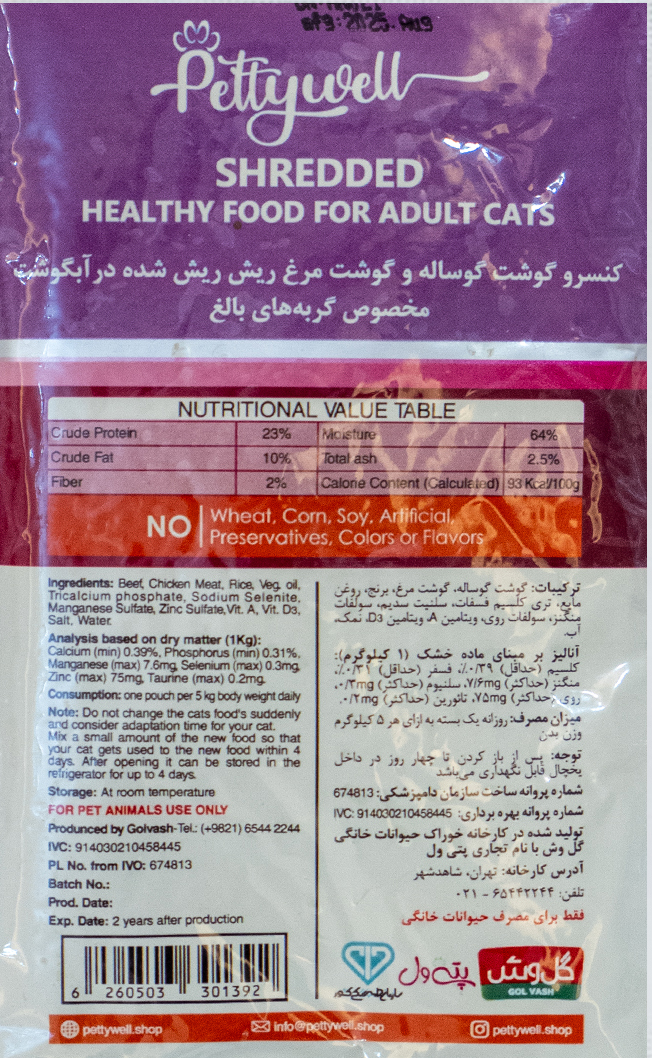 این غذای رشتهای از ترکیب گوشت گوساله و مرغ در عصارهای طبیعی ساخته شده تا هم طعم دلچسبی برای گربهات داشته باشه و هم تأمینکنندهی کامل پروتئین مورد نیاز بدنش باشه. با ۲۳٪ پروتئین و ۱۰٪ چربی، انتخابی ایدهآل برای گربههای پرتحرک و عضلانی است. گوشت گوساله آهن و زینک طبیعی داره که به تقویت سیستم ایمنی و سلامت مو کمک میکنه، در حالی که مرغ هضم آسانتری داره و انرژی پایداری فراهم میکنه. بدون غلات، سویا یا افزودنی مصنوعی، یعنی مناسب برای معدههای حساس و صاحبان دقیق.