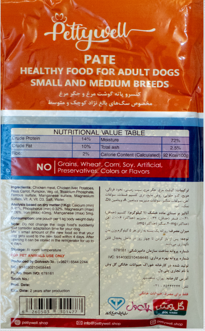 این پتهی خوشطعم از گوشت مرغ و جگر مرغ واقعی درست شده تا در هر وعده، انرژی و مواد مغذی لازم برای بدن سگهای بالغ را تأمین کند. پروتئین بالا (۱۴٪) به رشد و ترمیم عضلات کمک میکند و چربی کنترلشده (۱۰٪) انرژی پایداری میدهد بدون اینکه سنگینی معده ایجاد کند. جگر مرغ منبع طبیعی آهن و ویتامینهای گروه B است، که برای درخشش مو، قدرت ایمنی و شادابی پوست حیاتیاند. نبود غلات، سویا و رنگ مصنوعی هم یعنی مناسبترین گزینه برای سگهای حساس و با معدهی لطیف.